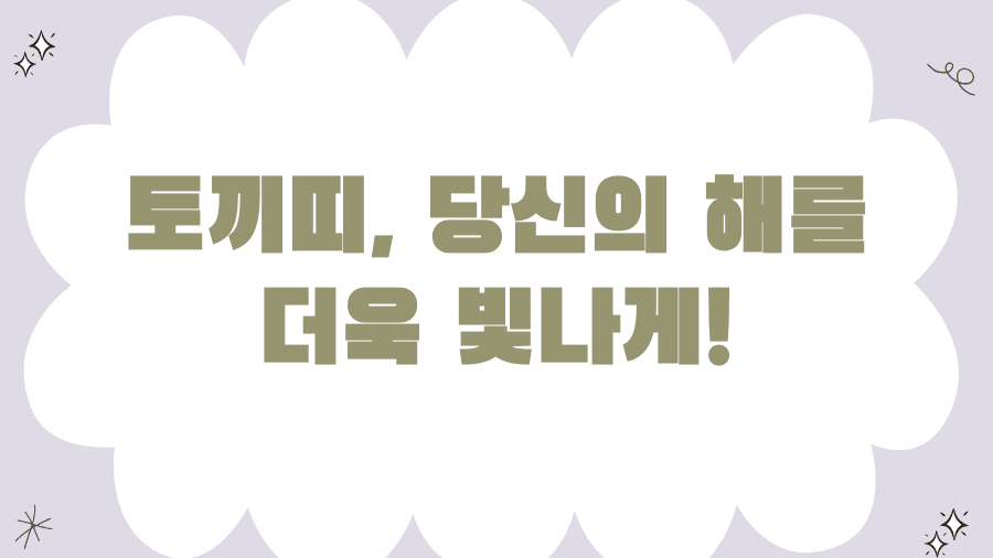 토끼띠 해의 주인공으로서, 자신의 강점을 살리고 단점을 보완하며 나아간다면 분명 더욱 빛나는 한 해를 만들어갈 수 있을 것입니다. 오늘 알아본 토끼띠에 대한 정보가 당신의 다가올 날들에 작은 등불이 되어주기를 바라며, 이 글이 유익했다면 친구들과 공유해주시고, 저희 블로그의 다른 흥미로운 이야기들도 많이 둘러봐 주세요!
