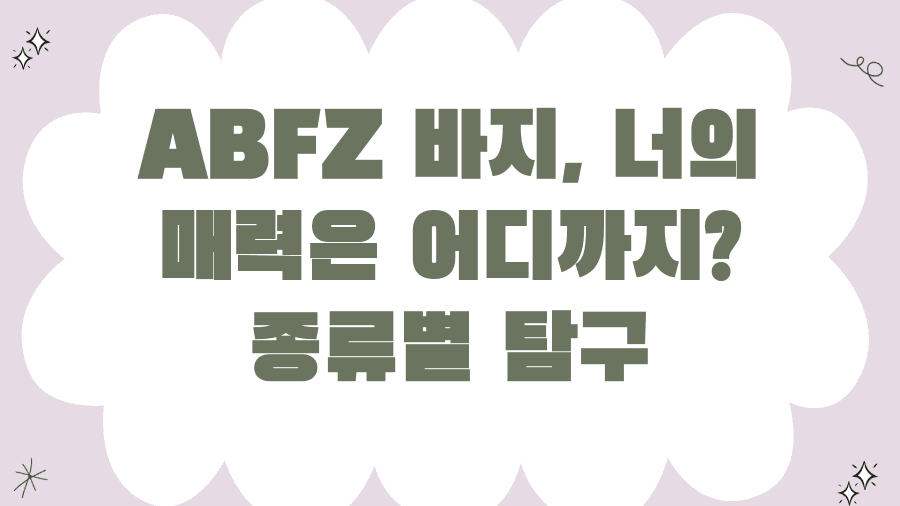 하지만 워낙 종류가 다양하다 보니 어떤 제품을 선택해야 할지, 또 내게 딱 맞는 사이즈는 무엇인지 고민될 때가 많죠. 이 글에서는 ABFZ 바지의 다채로운 종류와 특징부터, 나에게 꼭 맞는 사이즈를 고르는 꿀팁, 그리고 센스 넘치는 코디 제안까지 꼼꼼하게 알려드릴 예정입니다.