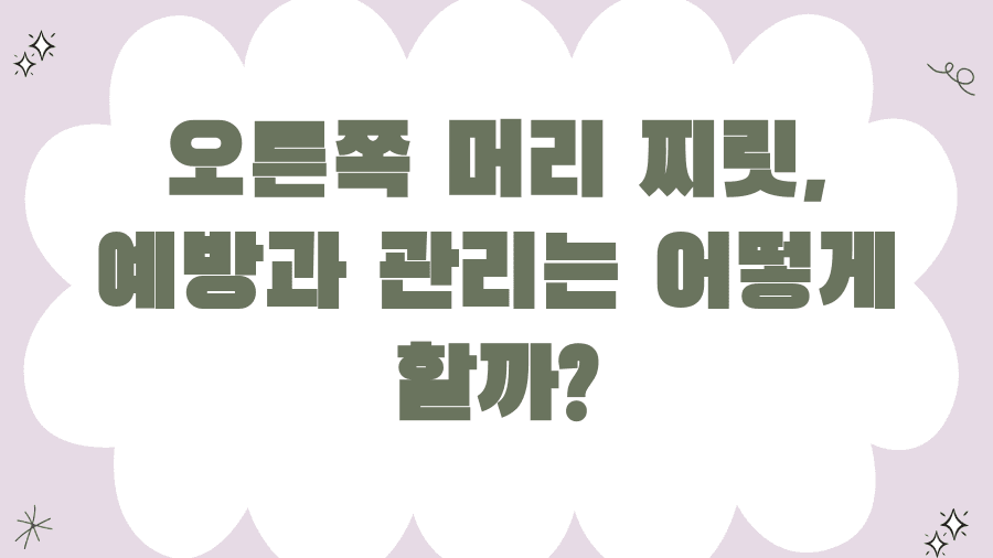 오늘 오른쪽 머리에서 느껴지는 찌릿한 통증의 다양한 원인부터 자가 관리법, 병원 진료 정보까지 상세하게 알아보았습니다.