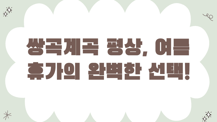 이 글이 여러분의 즐겁고 안전한 쌍곡계곡 여행 계획에 큰 도움이 되었기를 바랍니다. 쌍곡계곡 평상 정보에 대해 더 궁금한 점이 있다면 언제든지 댓글로 남겨주세요!