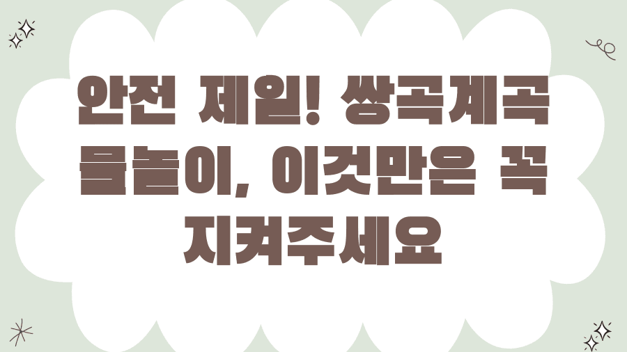 신나게 물놀이를 즐기는 것도 중요하지만, 무엇보다 안전이 최우선이라는 점, 잊지 않으셨죠? 쌍곡계곡 물놀이 안전 수칙을 철저히 지켜서 즐겁고 안전한 시간을 보내는 것이 중요합니다.