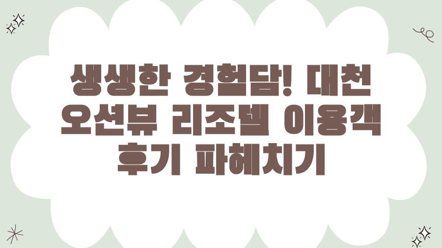 생생한 경험담! 대천 오션뷰 리조텔 이용객 후기 파헤치기