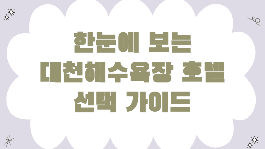 가성비부터 황홀한 오션뷰, 편리한 부대시설까지, 여러분의 완벽한 대천 여행을 위한 호텔 선택 가이드, 지금 바로 시작합니다!