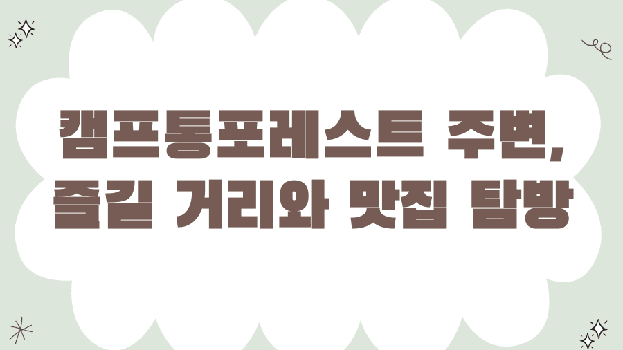 캠프통포레스트에서의 완벽한 휴식 후, 주변의 매력적인 장소들을 둘러보는 것도 놓칠 수 없는 즐거움입니다.