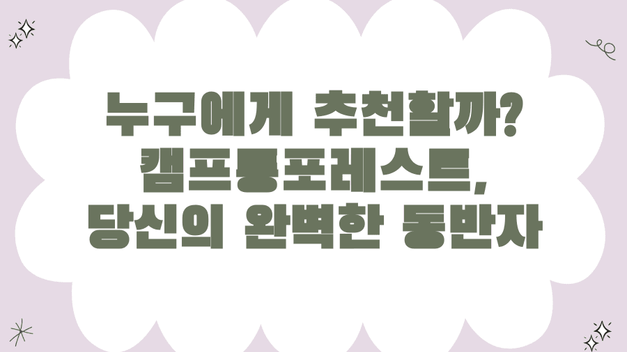 누구에게 추천할까? 캠프통포레스트, 당신의 완벽한 동반자