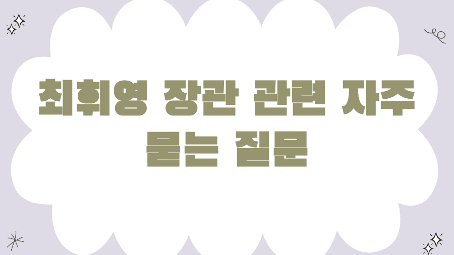 A1. 최휘영 장관은 학계와 행정 분야에서 문화 정책 관련 연구 및 실무 경험을 쌓아왔습니다. 그의 구체적인 경력 사항은 공식적인 프로필을 통해 확인하실 수 있습니다.