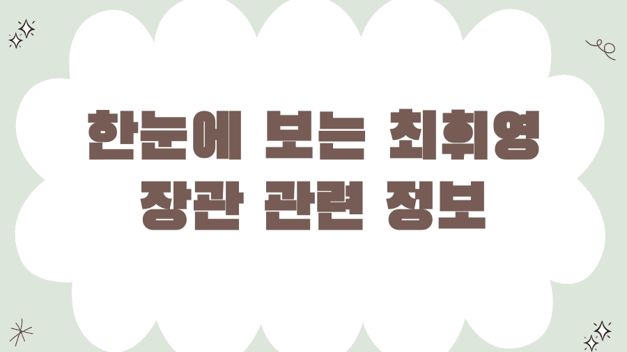 이 글을 통해 최휘영 장관님의 이력과 현재 추진 중인 정책, 그리고 문화체육관광부의 주요 소식까지 한눈에 파악하실 수 있도록 알차게 담아냈습니다.