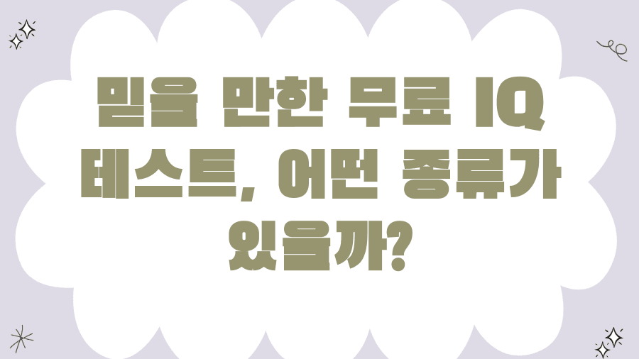 무료 IQ 테스트 종류 | 멘사 스타일 테스트, 일반 지능 테스트, 특정 능력 집중 테스트 등 |